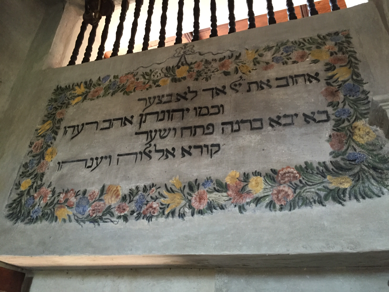 Recently when the restoration was in process, they discovered that the vaulted ceilings were covered in frescos (think Michaelangelo) that depict scenes of Jewish content including a detailed illustration of the order of the encampment of the Israelites in the desert.